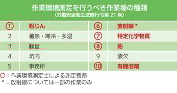 作業環境測定基準に準拠し、作業場で働く作業者の健康保全を目的とし、作業場の有害物の存在状態を科学的に評価し、作業場環境が良好であるか、また改善措置が必要であるかを判断するために行うものです。この測定に関しましては、当社の有資格測定士が対応いたします。