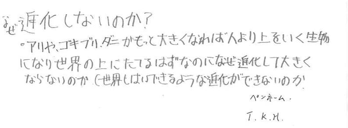 皆さんのような柔軟な考えを持つ子どもたちなら、もっともっと良い考えが出てくるかもしれません。ぜひ今後もサンゴに興味を持ちつつ、活発な話し合いの場を設けていただければと思います。                               伊藤いとう 馨司けいじ